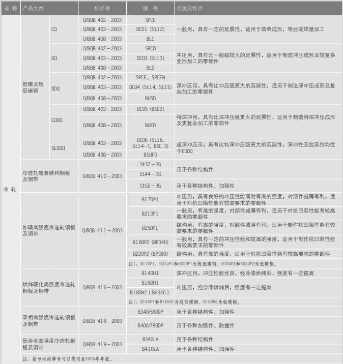 冷軋板的種類及用途