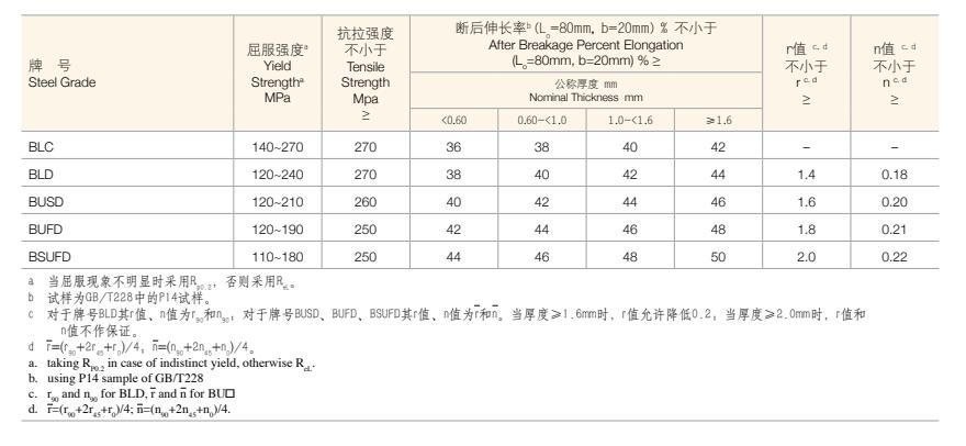 低碳和超低碳鋼鋼板及鋼帶之力學(xué)及工藝性能