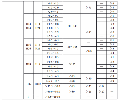 注:①1070,1070A,1060,1050,1050A,1100,1145,1200,3003,3004,3A21,8A06可供應寬度小于400mm的板材,但尺寸偏差按400mm寬度的板材檢查,當供應寬度為大于400mm至1000mm時,其尺寸偏差按1000mm寬度的板材檢查;可供應長度小于1000mm的板材,其尺寸偏差按長度為1000mm的板材檢查。