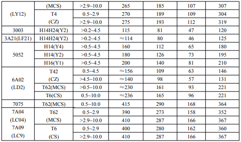 表5鋁合金板(單層鋁板、蜂窩鋁板面板)強度設計值